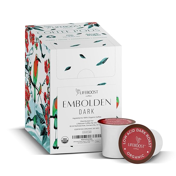 Lifeboost Dark Roast Low Acid Coffee K Cups - Single Origin Mold Free Non-GMO Organic Coffee Pods - Compatible with Keurig & Keurig 2 Machines - 42 Count