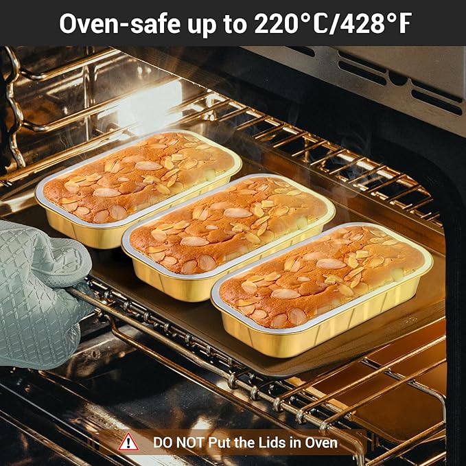 EUSOAR Disposable Ramekins with Lids, Gold 20.9oz 50pcs Mini Cake Pans with Lids,Disposable Bread Creme Brulee Muffin Ramekins Cupcake Cups Pan for Baking, for Party Favor Birthday