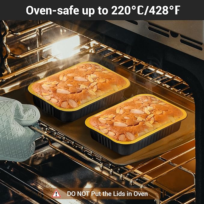 EUSOAR Mini Loaf Baking Pans with Lids, Black Gold Square 20oz 50pcs Aluminum Foil Disposable Bread Pan Ramekins with Lids, Muffin Liners Cupcake Baking Cups, Creme Brulee Cups Pans Containers