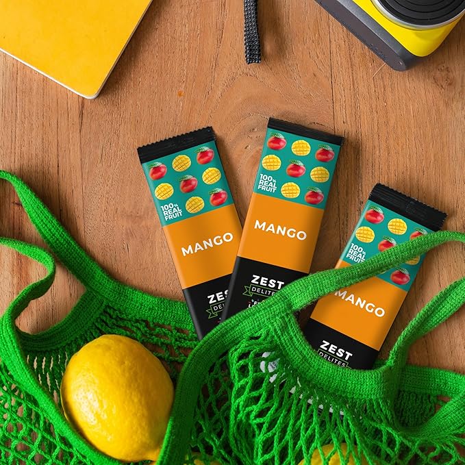 Fruit Snacks by Zest Delites, Fruit Leather, Dried Mango Bars, Healthy Snacks for Adults & Kids, No Sugar Added, Apple-Based Mango Strips, 0.88 oz x 10
