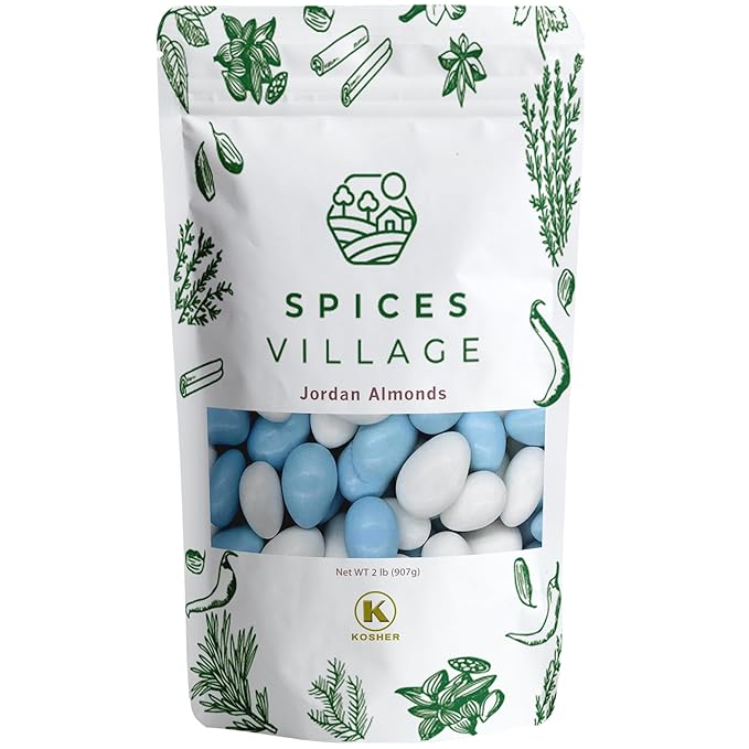 Spices Village Jordan Almonds, Blue and White, Crunchy Candy Coated Almonds, 32 oz, Perfect for Weddings, Baby Showers, Parties, Favors, and Gifting, Kosher Certified