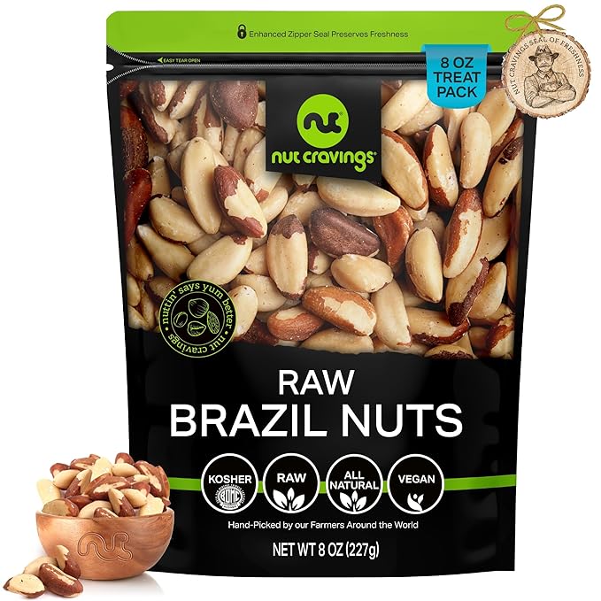 NUT CRAVINGS - Raw Brazil Nuts, Unsalted, No Shell, Whole, (8oz - 1 Pack) Bulk Nuts Packed Fresh in Resealable Bag - Kosher Healthy Snack, Food Assortments