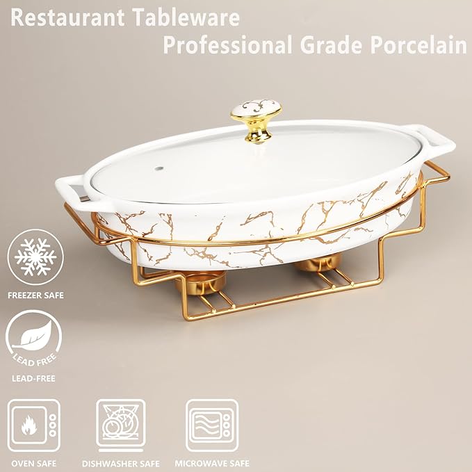 - Multipurpose Baking Dish Set – size 12.2" x 7.2" Inch,capacity 1 Quarts, Our ceramic baking dish pans are ideal for all your favorite foods, Add color to your event, compared to stainless steel food trays, these vintage palace style porcelain plates have a sophisticated shine thanks to their white and gold plating.