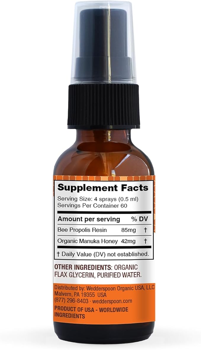 Wedderspoon Propolis and Manuka Honey Throat Spray, Original Honey, 1 Fl Oz (Pack of 1), Sore Throat Relief, Natural Immune Support