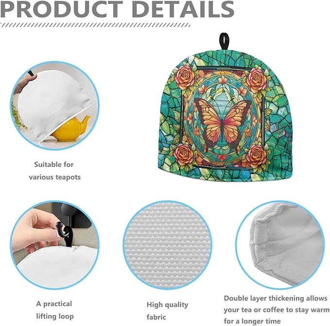 Butterfly Tea Cozy for Teapot Insulated Rose Tea Pot Cozy Green Tea Pot Cozy for Keeping Warm Tea Cosy for Teapot Dust Protector