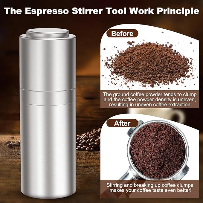 - Make Better Expresso---This Silver Espresso Hand Tampers tool distributes your grinds evenly, maximizing extraction and minimizing channeling. The small espresso stirrer is ergonomically designed with an easy to grip handle that feels comfortable in the hand and does not slip easily.The TIVERAIN coffee bar espresso accessories stirrers are used by professional baristas and home baristas to stir coffee powder ,which suitable for various occasions, such as cafes, kitchens,parties, birthdays, festivals, concerts, ceremonies and other occasions.