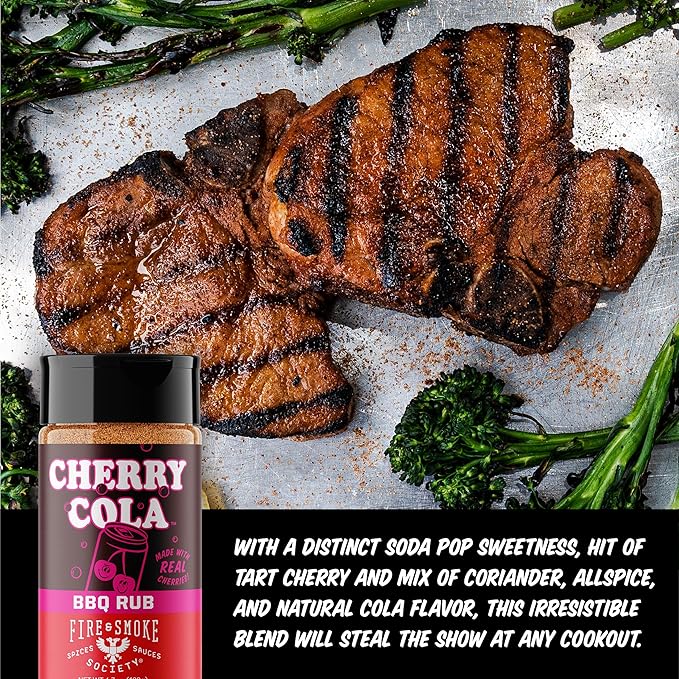 - IRRESISTIBLE FLAVOR: CHERRY COLA: With a distinct soda pop sweetness, hit of tart cherry and mix of coriander, allspice, and natural cola flavor, this irresistible blend will steal the show at any cookout. The Perfect Blend of Tart Cherry Powder, Cane Sugar, Paprika, Coriander, Allspice and Natural Cola Flavor. Use it as a pork rub, pork seasoning, including smoked port butt, pork chops and pork tenderloin.