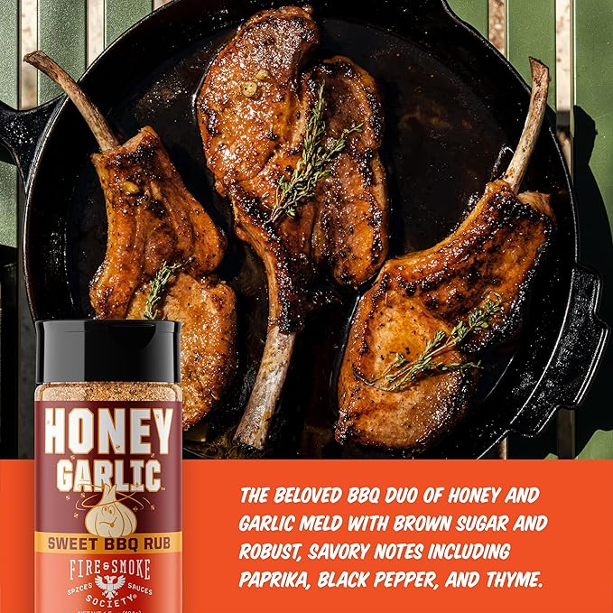 - Honey and garlic infused bbq delight: Honey Garlic seasoning is the perfect duo of honey and garlic meld with brown sugar, honey, garlic, paprika, black pepper and thyme. Use it as a steak seasoning, chicken seasoning, rib rub, brisket rub or on chicken thighs, turkey wings, rotisserie chicken, chicken burgers and wings.