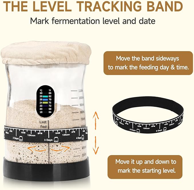 - Multi-functional application: In addition to sourdough starter, it can also be used for liquid fermentation to make flavored bread. It comes with sourdough cookbook, making it easy for beginners to get started. The sourdough starter jar kit is a great gift for bread enthusiasts.