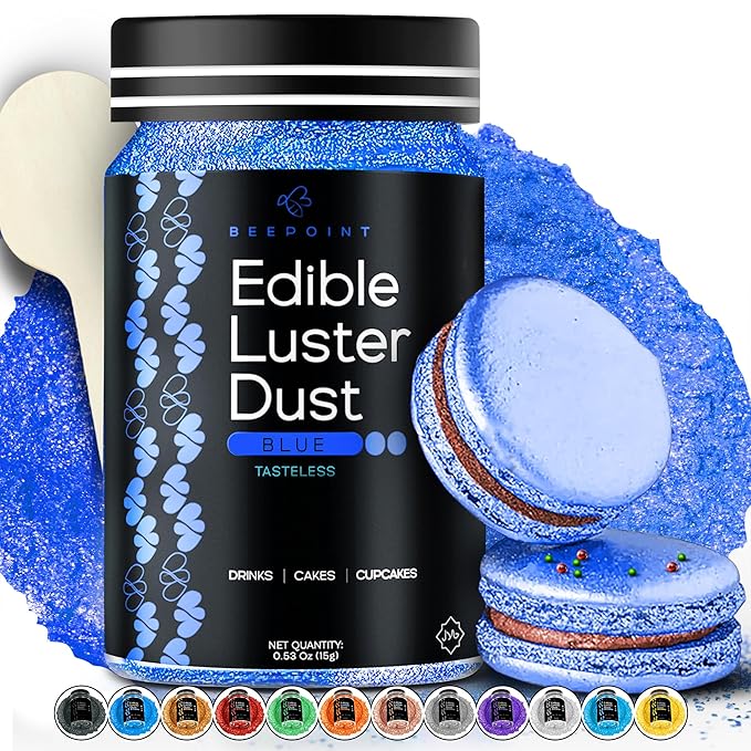 BeePoint Blue Edible Luster Dust 15g - Food Grade, Vibrant Color Shimmer Powdered Dust for Drinks, Cocktails, Cake Decorating, Baking, Chocolates, Candy, Sweets, & Cookies - Vegan & Gluten Free