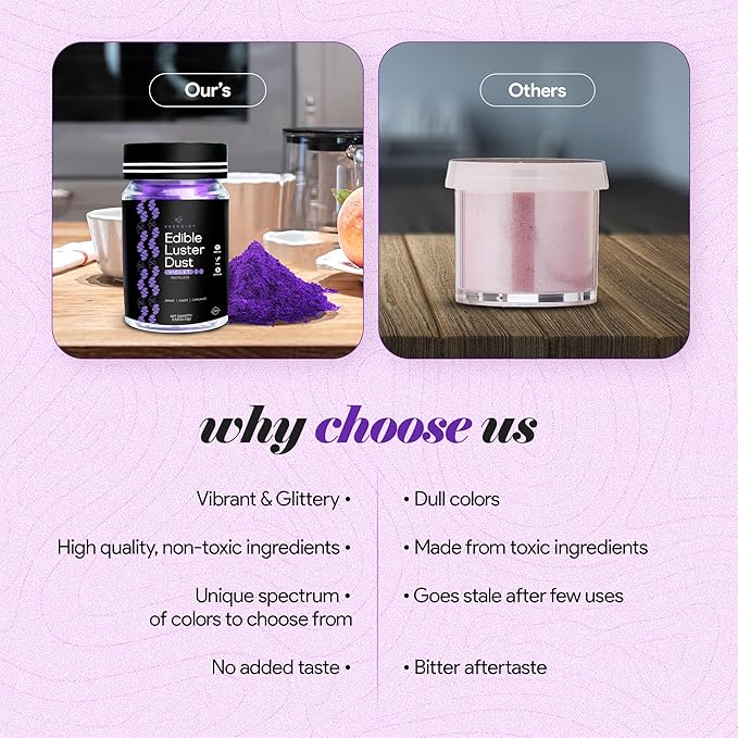 - Effortless Sparkle: Achieve vibrant metallic food glitter edible dust on cakes, desserts, and drinks with our easy-to-use luster powder dust, perfect for both beginners and professionals