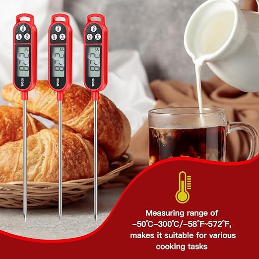 - Broad Application: the kitchen thermometer for cooking has a myriad of uses; Whether you're cooking beef, lamb, pork, turkey, or chicken, this kitchen tool ensures a suitable temperature reading every time; With its broad usage, it makes an ideal kitchen tool for professional chefs and home cooks alike; The thermometer also excels in brewing coffee, milk, or even making cheese and bread