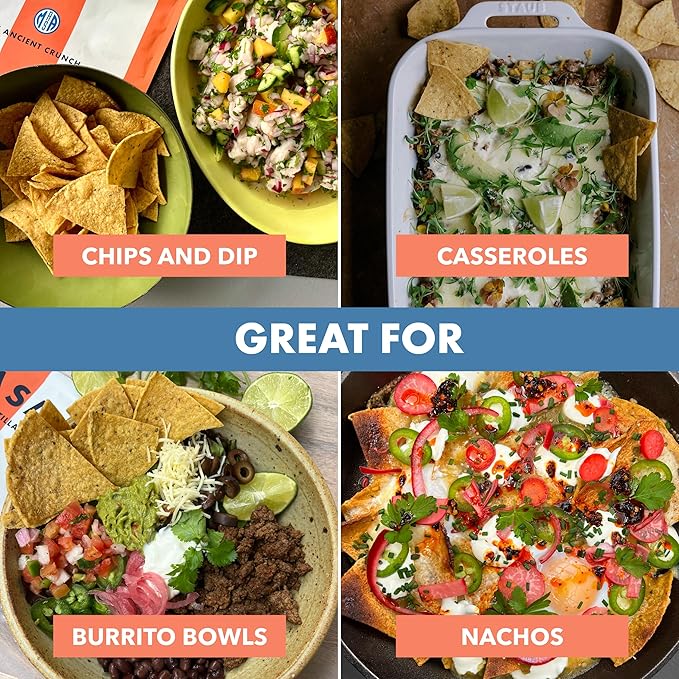 - Real, Good-For-You Ingredients - Our corn tortilla chips are completely handmade in small batches using seed oil-free ingredients. These GMO-free snack chips are made exclusively with naturally harvested corn, grass-fed tallow, and sea salt.