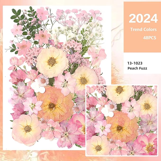 AHTONG 14 Types Pink Dried Pressed Flowers for Craft, Leaf Plant Herbarium for Resin Molds Jewelry Making Floral Decors (Peach Fuzz)
