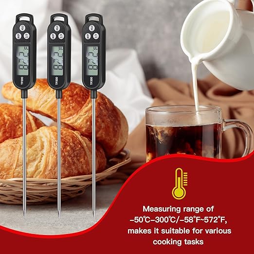 - Broad Application: the kitchen thermometer for cooking has a myriad of uses; Whether you're cooking beef, lamb, pork, turkey, or chicken, this kitchen tool ensures a suitable temperature reading every time; With its broad usage, it makes an ideal kitchen tool for professional chefs and home cooks alike; The thermometer also excels in brewing coffee, milk, or even making cheese and bread