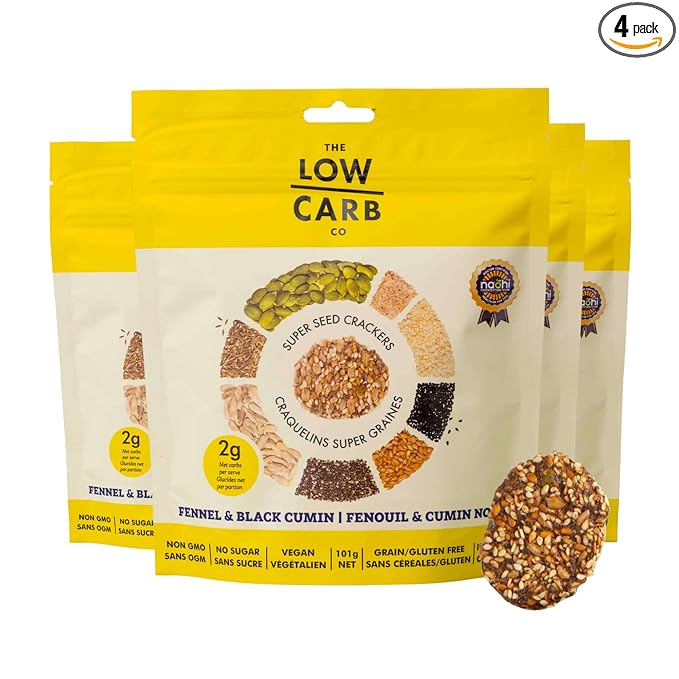 Super Seed Crackers, Gluten Free & Keto Friendly Healthy Snacks, Vegan, Zero Sugar, Paleo & Diabetic Friendly, Nut Free, 20g High Protein, 18g High Fiber, 3.56oz Each, 4-Pack, Fennel & Black Cumin