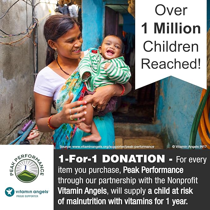 - Over 1 Million Customers + 1-for-1 Donation To Vitamin Angels. Peak Performance is celebrating over 1 Million customers and we are also very proud of our 1-for-1 donation match program. For every unit you purchase, through our partnership with the nonprofit Vitamin Angels, we will supply a child at risk of malnutrition with vitamins for 1 year! To date, we've supplied over 1 Million children with life changing Vitamins- So thank you for helping us continue this great cause!