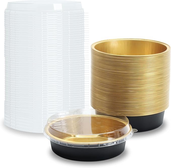- Value Set -- This value package includes 50Pcs food-grade aluminum foil cups and 50 matching clear dome lids for ultimate convenience. Each cup measures 4"L x 4"W x 1.4"H, Capacity is 7.2oz.