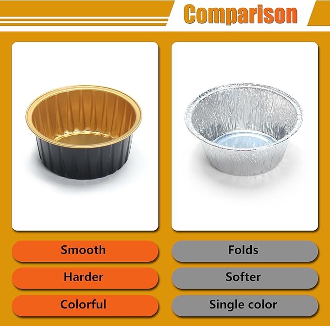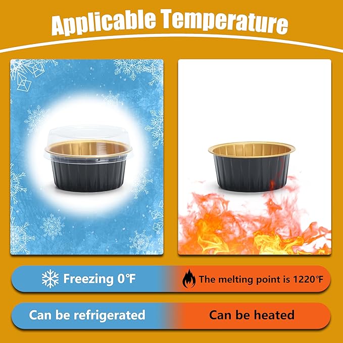 - High-Quality Material -- Crafted from premium aluminum foil, The cups are durable, water and oil resistant, and can withstand temperatures up to 220℃/428℉ in the oven.