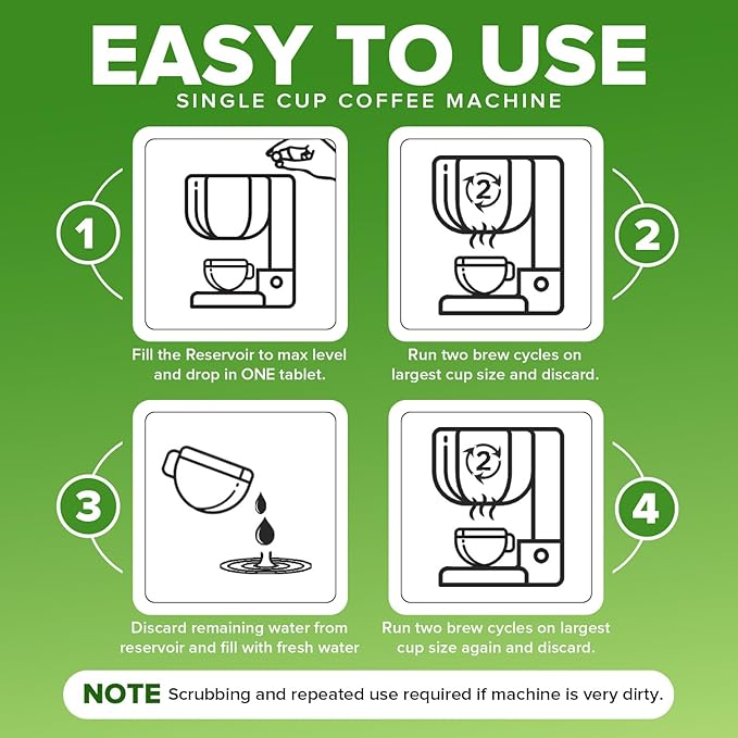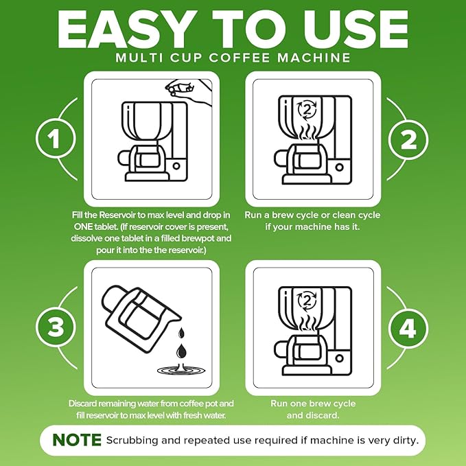 - Cleans up to 3 times as much as smaller tabs, pods, powders or liquid solutions; 12 X-Large deep cleaning tablets that descales your coffee maker; Heavy duty tabs dissolve slowly for maximum efficiency; Removes hard water deposits, limescale, oils and mineral buildup that ruin the taste of your coffee.