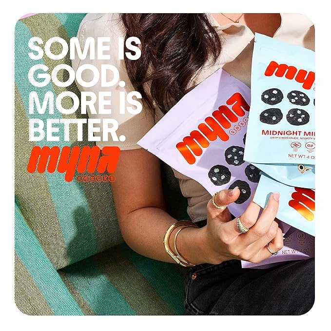 - MYNA MINI SNACKING COOKIES: Indulge in the rich flavor of these mini snacking cookies, made with real cocoa and a hint of sea salt. With a perfect balance of chewy and crisp textures, these gluten-free cookies provide a satisfying treat. Whether you're at home, at work, or on the go, these mini cookies are an ideal choice for satisfying cravings in a small, convenient portion. Enjoy a sweet, crunchy snack any time of the day.