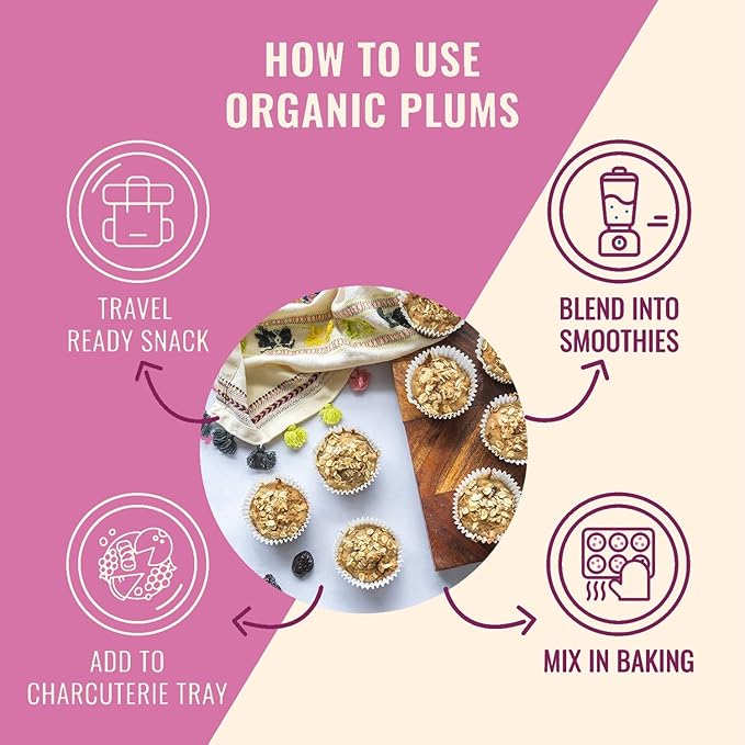 - CREATIVE USES: Our flavorful dried plums also make for a delicious and nutritious addition to a cheese platter, gift baskets, mix with granola and yogurt, add to your smoothies, bake, or eat them straight out of the bag!
