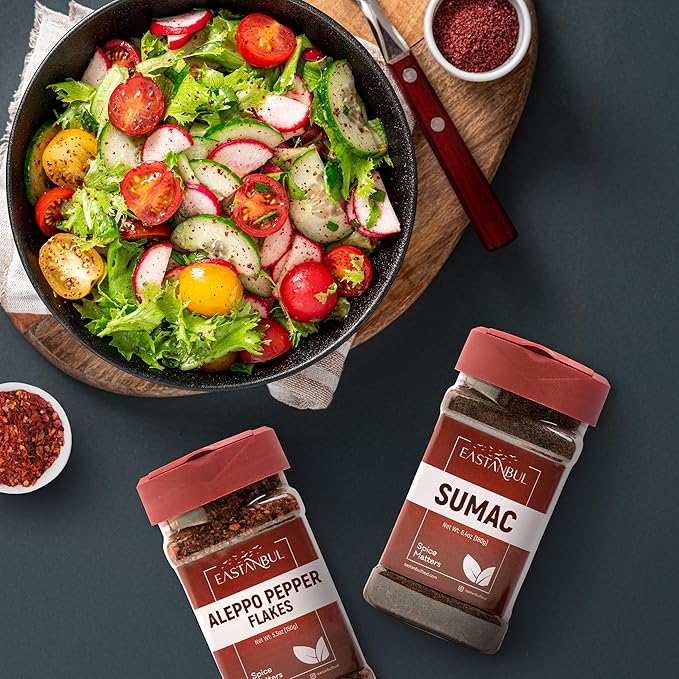 - 100% Natural and Clean : Our 2-piece Spice Kit consisting of Ground Sumac Spice and Allepo Peper is Vegan, pure, non-irradiated, Gluten-Free & Non-GMO, MSG-Free, and Semi-Dried