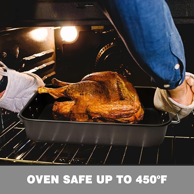 - Pan Dimensions: Rectangle baking pan is 15.7x 11 x 2.8 inches. It has a perfect size for lasagna noodles, bread, cake, brownie, and for roasting up to a 20 pound turkey. Hand wash recommended. For best results, wash in warm, soapy water before first and after each use.