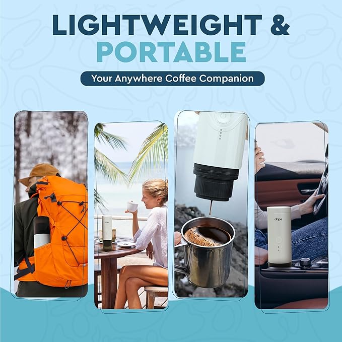 drips Portable Electric Espresso Machine with 3-4 Minute Self-Heating, 20 Bar Mini Coffee Maker Compatible with NS Capsule & Ground Coffee for Camping, Travel, Hiking, Office (Matte Black)