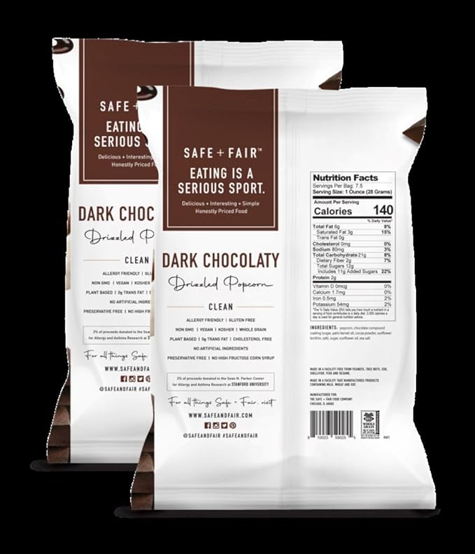 - Safe + Fair Kettle Popped Gourmet Popcorn, Vegan Dark Chocolaty Drizzle, Free From Top 9 Allergens and Artificial Ingredients, 5.5 oz