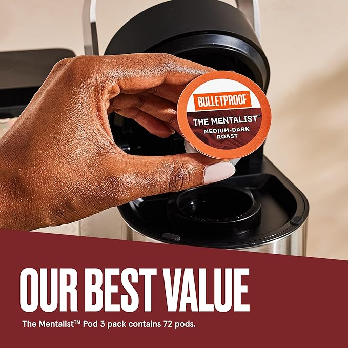 - Unbeatable Taste: Contains three boxes of 24 Bulletproof The Mentalist Medium-Dark Roast Single Serve Coffee Pods (72 Count Total), a clean coffee with a rich, full-body and premium flavor, Packaging May Vary