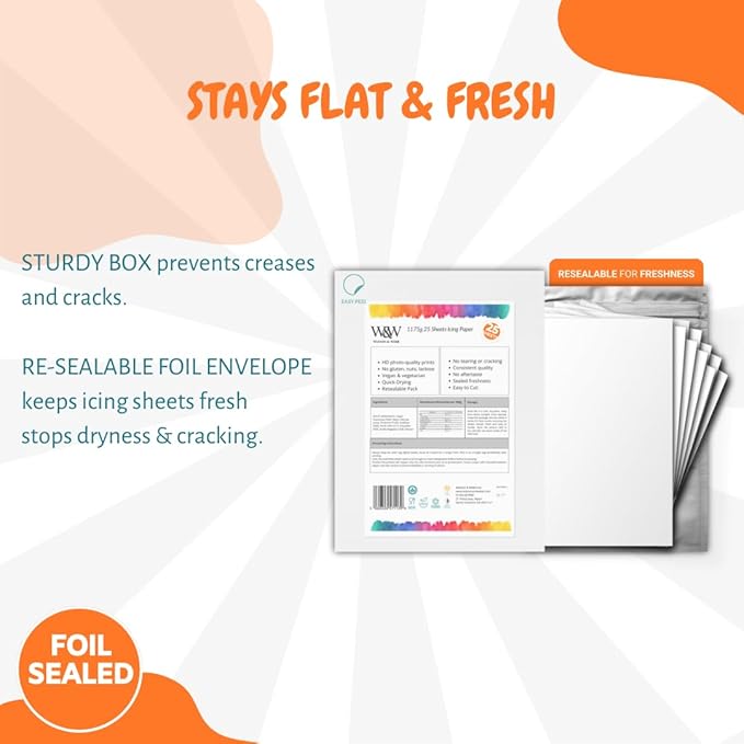 - FRESH EDIBLE PRINTING SHEETS GUARANTEED: Advanced packaging keeps printable icing paper pliable and prevents the cracking issues found with other edible printer sheets.