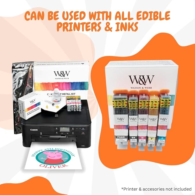 - WORKS WITH ALL EDIBLE PRINTERS: Compatible with Canon, Epson and major food-safe printer systems. Certified cake printing sheets are vegan, gluten-free for home and commercial use.