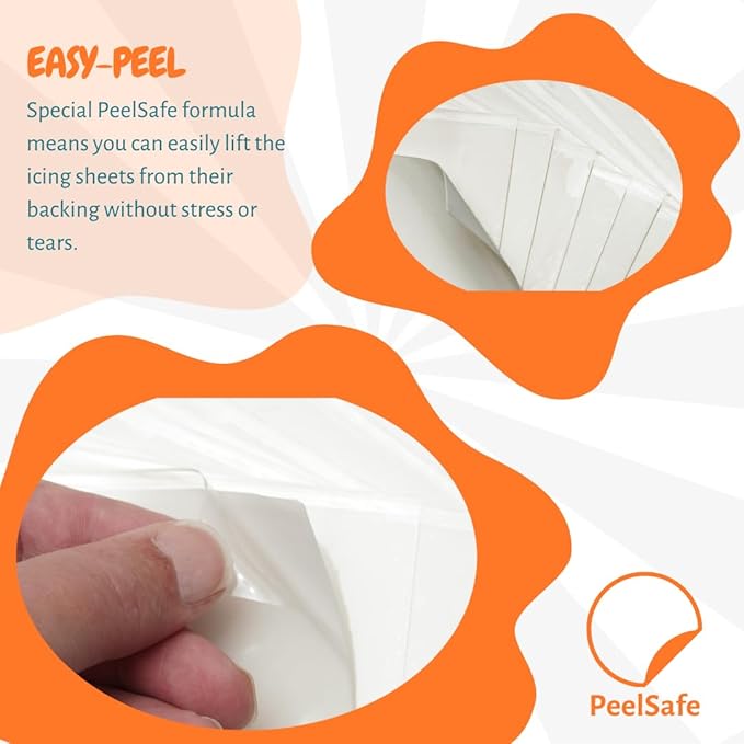 - EASY-PEEL PRINTABLE FROSTING SHEETS: Durable edible printing paper resists tearing during removal. Flexible cake decorating sheets cut cleanly for custom edible images.