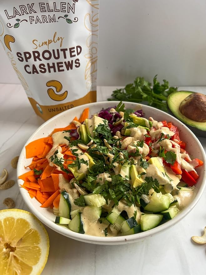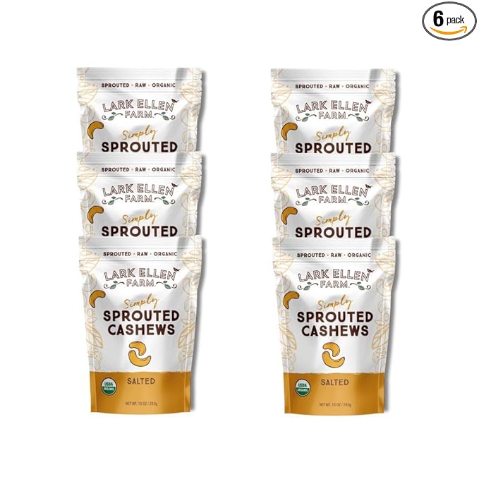 Lark Ellen Farm Whole Cashews, Salted Raw Sprouted Nuts, Certified USDA Organic, Gluten-Free, Vegan Snacks (10 oz, 6 pack)