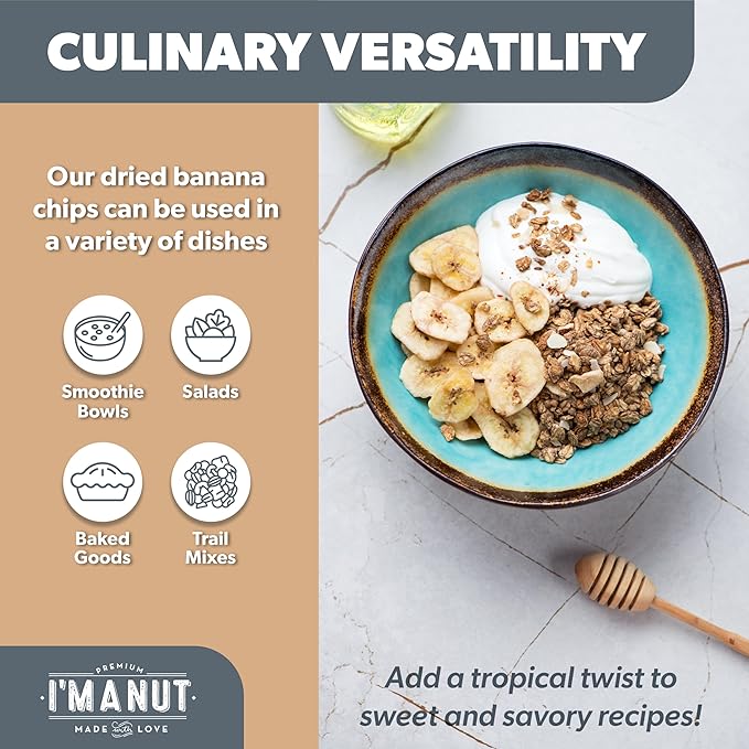 - Healthy Snack on The Go: Enjoy the sweet & tangy goodness of these preservative free banana chips all year long. A taste of tropical flavor in every bite. perfect for snacking, adding to trail mixes, topping yogurt, or boosting flavor in baking and desserts.
