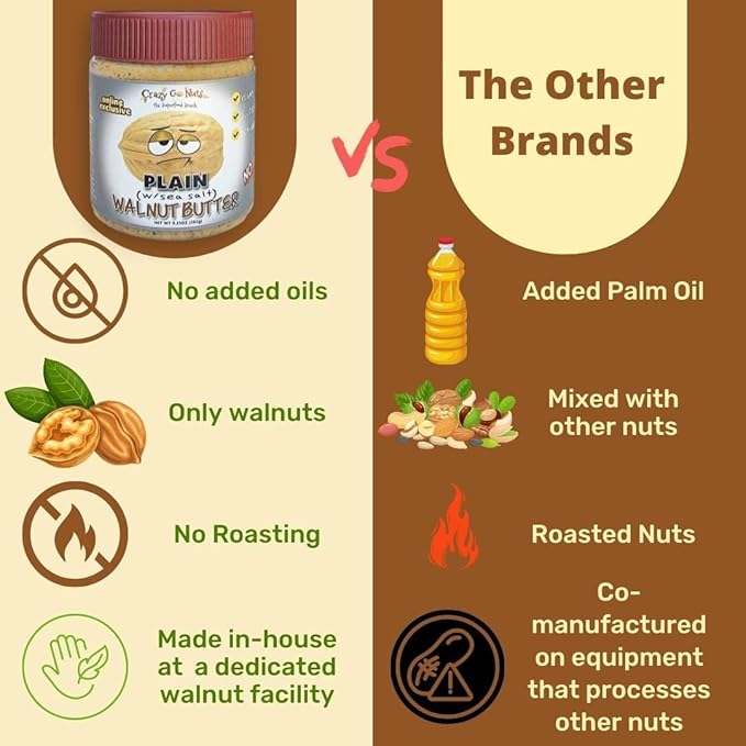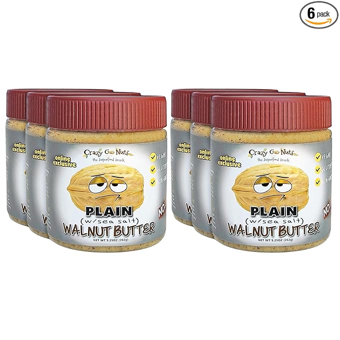 Crazy Go Nuts Walnut Butter - Plain w/ Sea Salt - Healthy Snacks, Keto, Vegan, Low Carb, Gluten Free, Superfood - Natural, Non-GMO, ALA, Omega 3 Fatty Acids, Good Fats and Antioxidants - 9.25 oz (6-Pack)