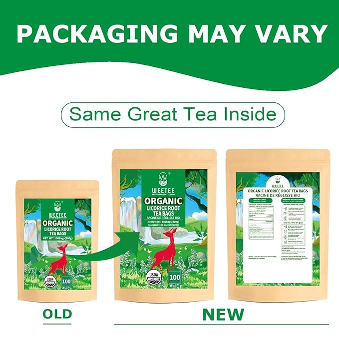 WT WEETEE Organic Licorice Root Tea Bags, Organic Pure Licorice Root Herbal Tea 100 Count, Naturally Caffeine-free