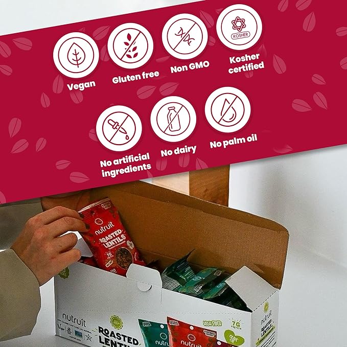 - Plant-based protein: Nutruit roasted lentil healthy snacks provide 7 grams of plant-based protein and 110 calories per serving, making them an excellent protein source for vegans and vegetarians.