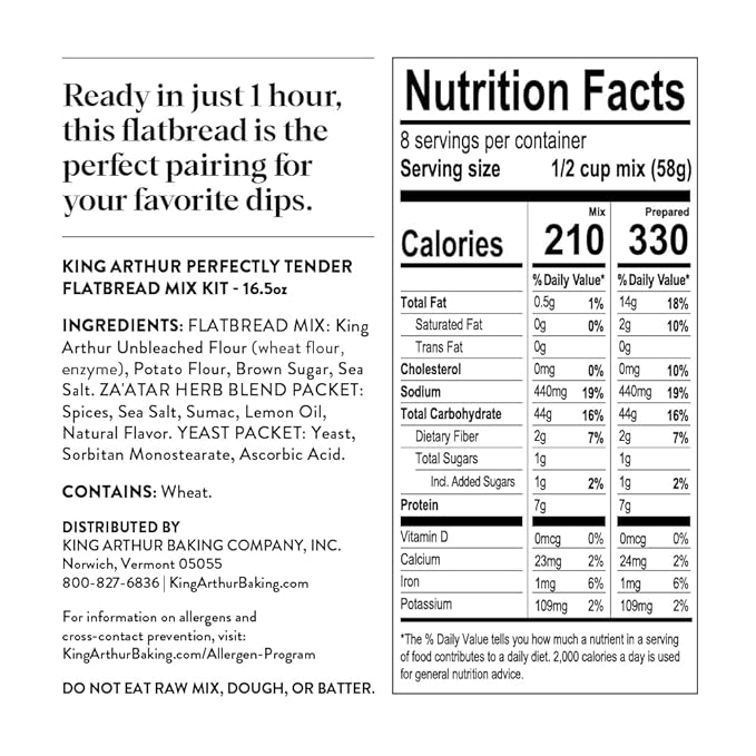 King Arthur Baking Company Perfectly Tender Flatbread Mix Kit 16.5 oz., Baking Mix - Ready in 1 hour