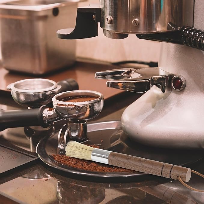 - Barista Cleaned Off in One Swipe: This coffee cleaning brush will be a reliable tool for baristas, efficiently removing coffee grounds. It's also an excellent boar hair brush for coffee enthusiasts at home, whether you're a dedicated home barista or a casual coffee lover. With just one swipe, this dusting brush simplifies the cleaning process, making it easier to maintain your equipment.