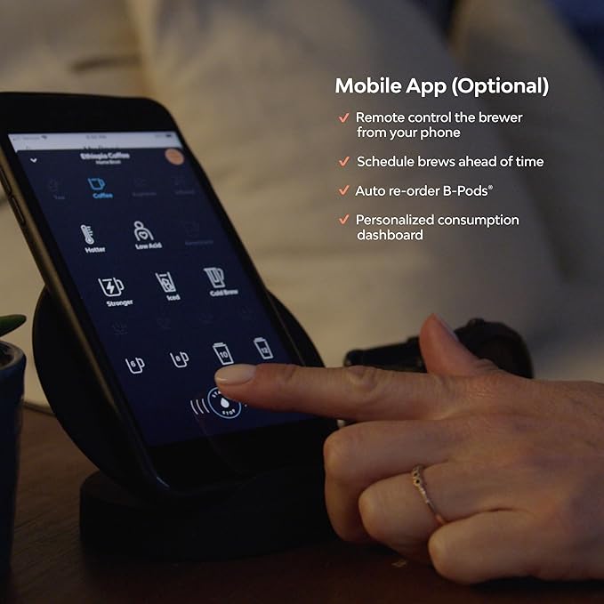 - MOBILE APP: Use the Bruvi App to brew remotely from your phone, schedule brews in advance, auto re-order B-Pods and access a personalized consumption dashboard. (App is optional)