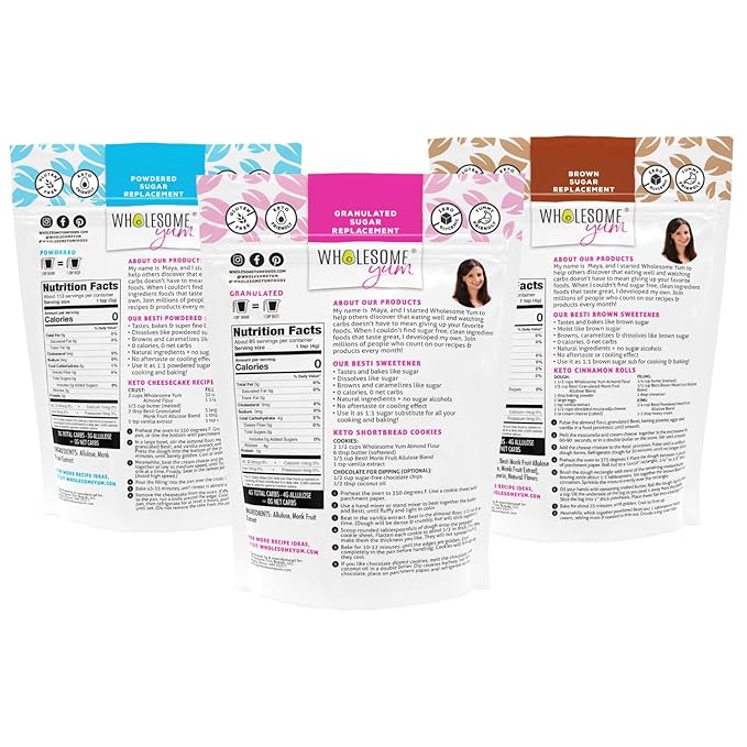 Wholesome Yum Besti Natural Sugar Substitute Multi Pack - Granulated, Powdered, Brown - Monk Fruit Sweetener Blend With Allulose (No Erythritol) - Keto, Non GMO, Zero Calorie, Zero Carb (12 oz 3-Pack)