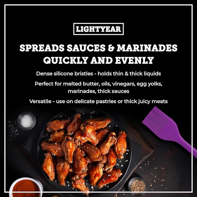 - [ SPREADS SAUCES AND MARINADES QUICKLY AND EVENLY ] Lightyear’s dense silicone bristles absorb both thick and thin liquids for more effective basting. This means you get an even spread of your marinade, ensuring that every inch of your food is infused with flavour. Perfect for melted butter, oils, vinegars, egg yolks, and juicy meat marinade.