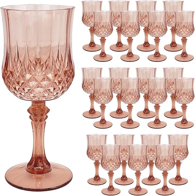 24 PCS Rose Gold Plastic Wine Glasses,Reusable Plastic Wine Glasses,Rose Gold Goblet Glass,Durable and Sturdy Cups Can Be Used for Various Parties Such as Weddings!