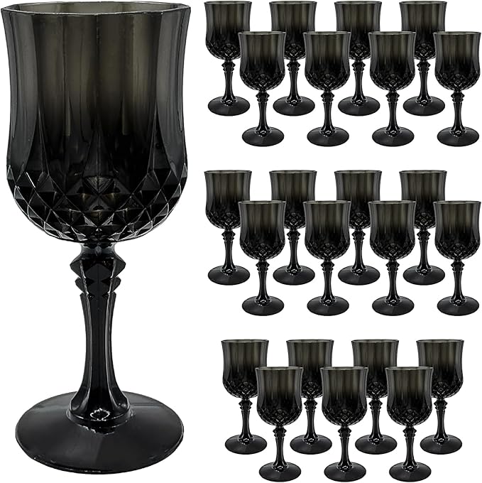 - 🍷🍷PRODUCT DESCRIPTION:You will receive 24 beautifully packaged black crystal design wine glasses, the body of the black crystal texture of the glass body, in the light refraction can show its elegant sense of atmosphere, so that you taste the perfect partner of white/red wine!