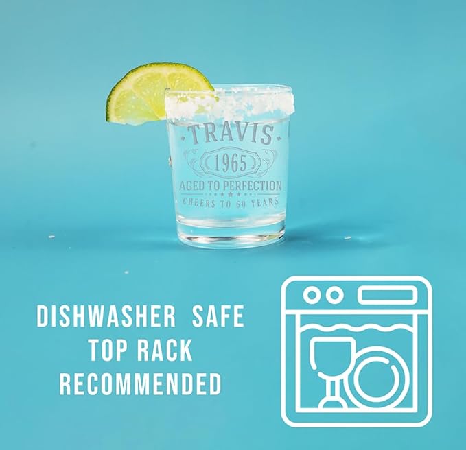 - Etched design is high quality and dishwasher safe, making these easy to care for. This engraved shot glass with the vintage design is a gift that will make any birthday more special.