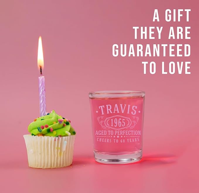 Personalized Vintage 60th Etched 2.5oz 1pk Shot Glass – Custom 1965 Happy 60th Birthday Gifts Men Women, Customized Cheers 60 Years, Turning 60 Year Old Decorations Decor, Party Favors Best Gift Idea