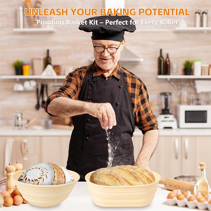 - VERSATILE SHAPES AND SIZES: Our kit includes both round (9.3inch/23.6cm) and oval (10.2 inch/26cm) proofing baskets to suit any baking project, each capable of holding up to 2 pounds of dough. Whether you're shaping classic sourdough loaves or artisanal pizzas, these baskets provide the perfect canvas