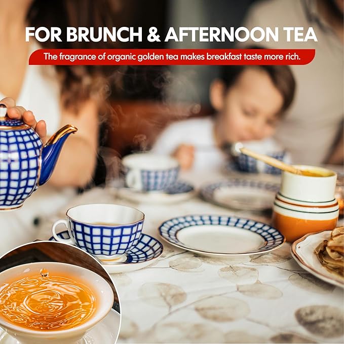 - CHARMING COLOR & AROMA --- The organic gold loose leaves are in the form of long, thin strips. After brewing, the tea broth is yellow in color with a strong tea aroma. The taste is smooth and the light tea flavor lingers in the mouth.